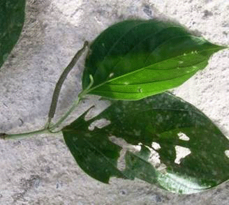 Woody stems, with internodes really swollen (stem growth is similar to pink belly ). Has dimorphic leaves, either oval or heart shaped. The color varies from bright to dull green. The texture of the leaves is leathery. |
