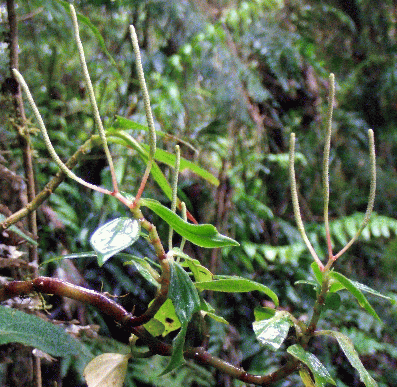pegada a los árboles, sus hojas son
