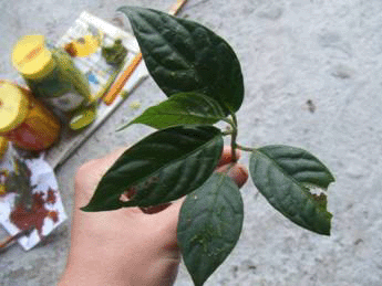 Looks like a small coffee plant. Small ovoid leaves, of the spinach leaf kind. |