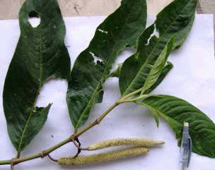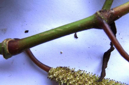 Leaves are more lanceolated than the speckled spinach leaf, and duller in color. The stem appears woody. |