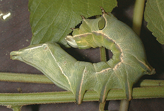 Multiple tachinid maggots emerged from the caterpillar simultaneously and crawled away to pupate. In later instars, the maggots breathed via respiratory funnels that pierced the caterpillar's integument (See the lower image above and Other Images for a more detailed view). |