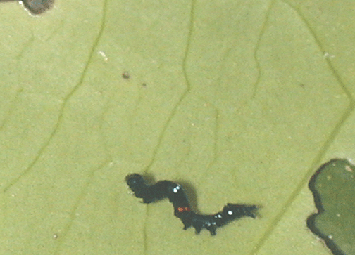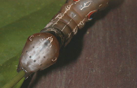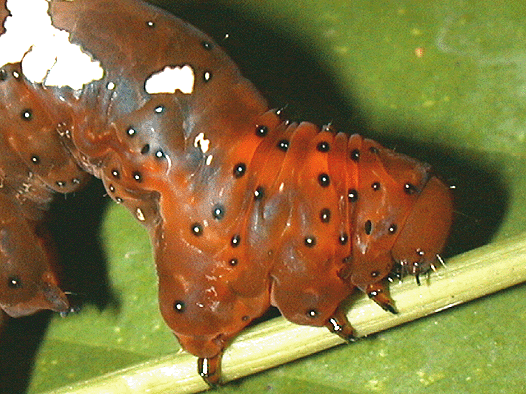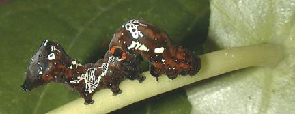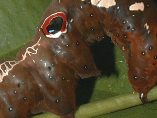 Middle instar with eyespots and feeding damage shown